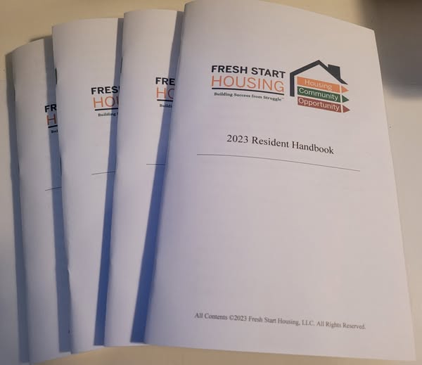The Residential Handbook provides the policies, rules, and regulations required for living safely and productively in the Fresh Start Housing residential community. The guidelines are designed to ensure a pleasant, safe, and equitable residential living experience.