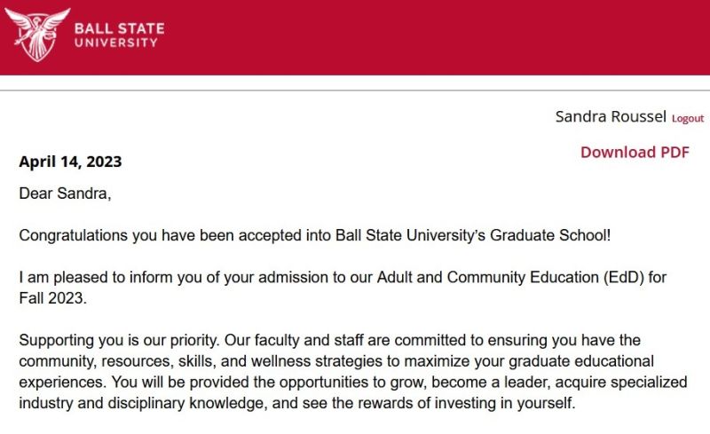 I have been waiting on pins and needles! Hoping to be accepted into Ball State’s Adult and Community Education Doctorate program.