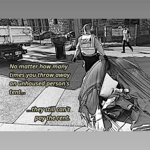 No matter how many times you throw away an unhoused person’s tent…. they still can’t pay rent, are not cured of their drug misuse, or healed from mental health issues.
